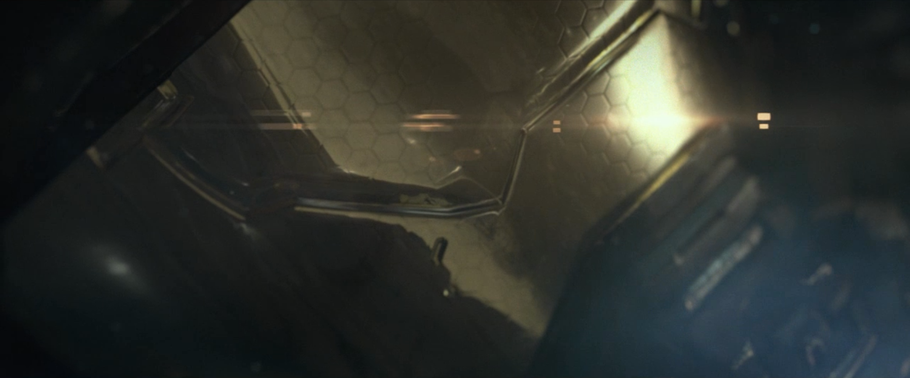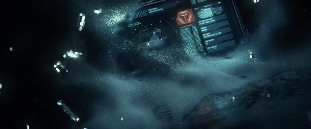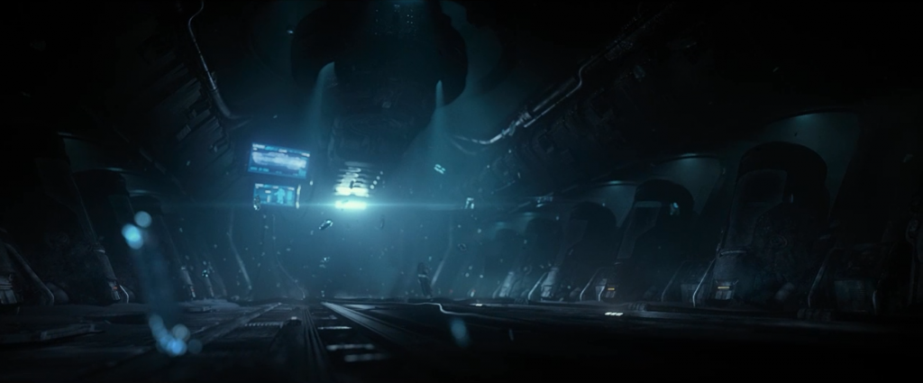 Inside the ship in the cryo bay with ice particles floating about. This seen just looks cold and foreboding.