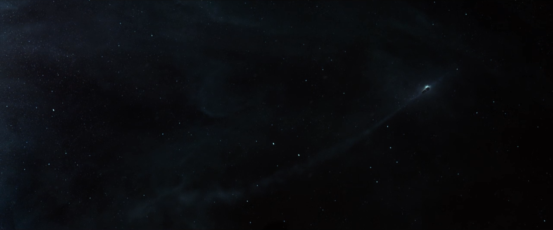 The Forward Unto Dawn at a distance (right middle) lost in space.