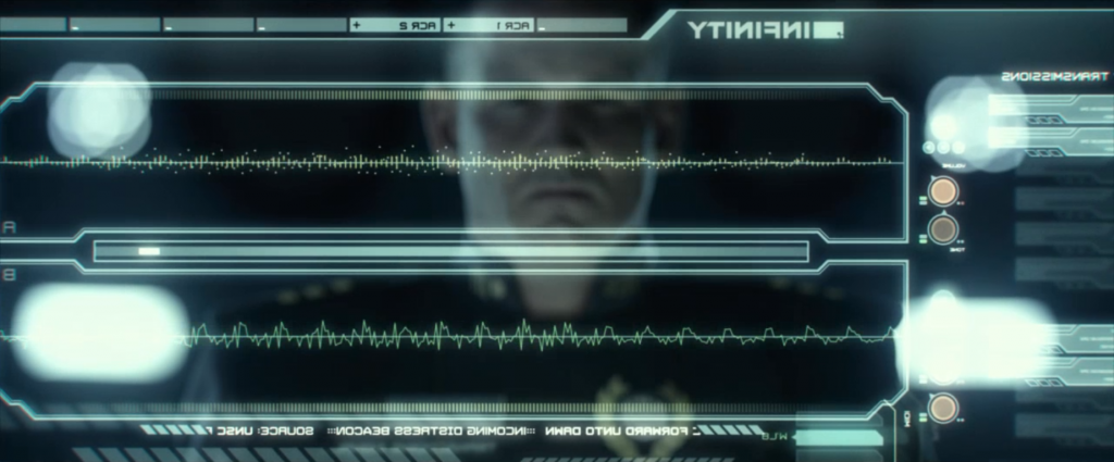 It’s Commander Lasky aboard the UNSC Infinity. He’s listening to an SOS call from the Forward Unto Dawn. It’s Cortana making the plea.