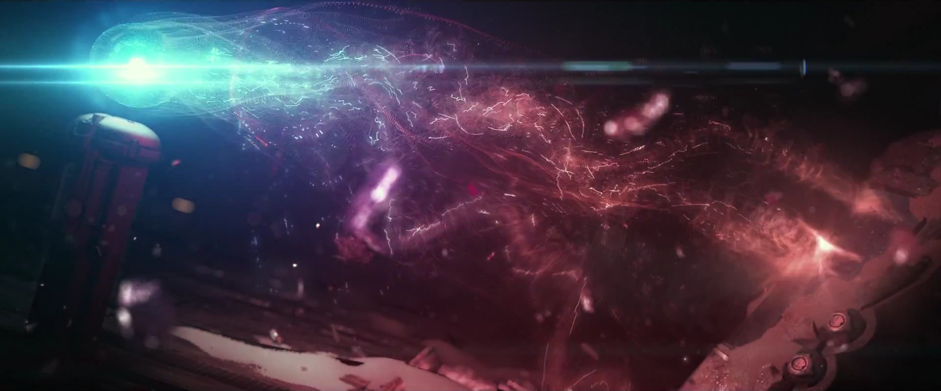 Immediately thereafter we see the orb Cortana blast tendrils of red energy towards the tube.