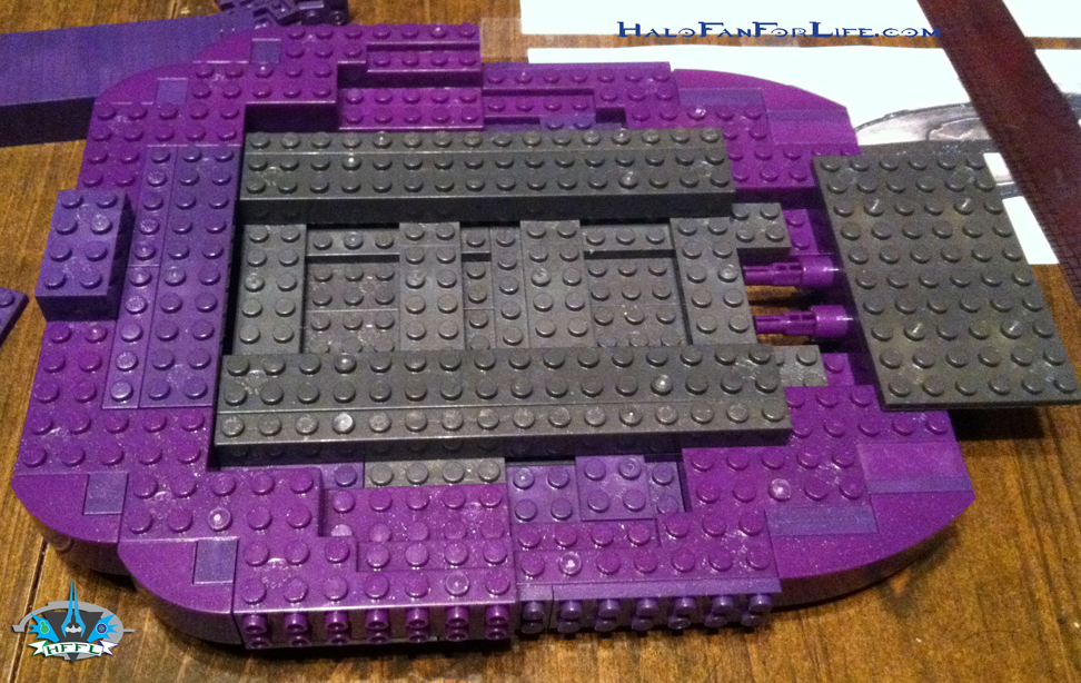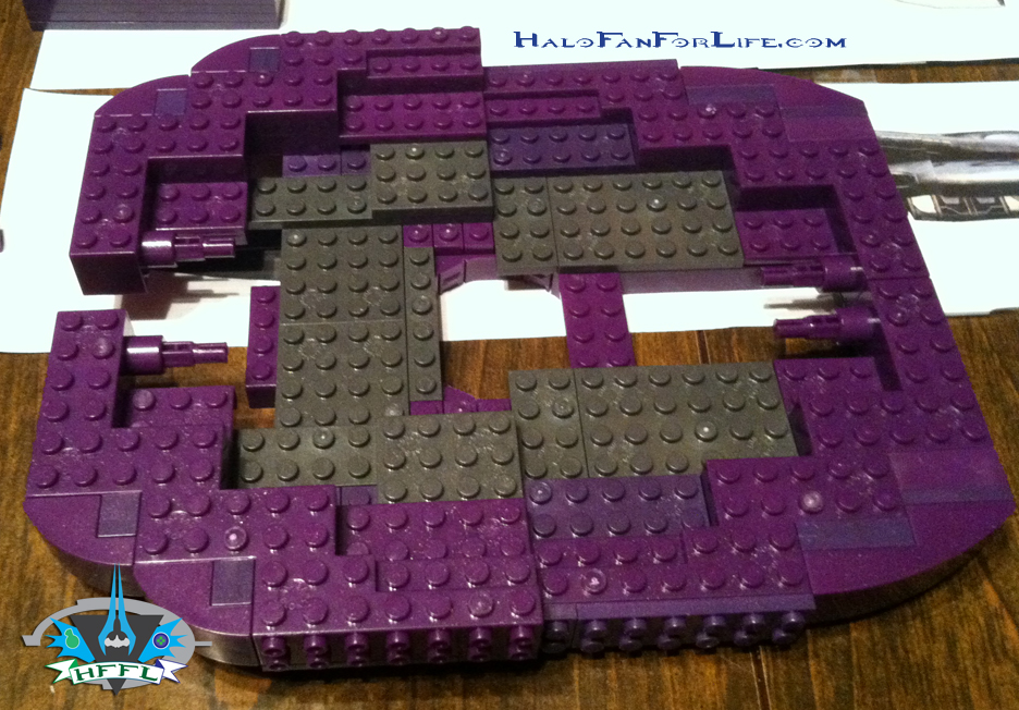 Let me say this, there were several times were I had to completely tear down a section I built to rebuild it. I either wasn’t satisfied with how it looked or it wasn’t sturdy enough. Along the way, my friend and fellow Halo Mega Bloks customizer, Goodwill Hunter, made his version of a CCS cruiser. I looked at what he did to see if I could utilize some of his design in my build. Turns out I could to a point. The top neck portion of this custom build I relatively patterned from his. Though it is different.